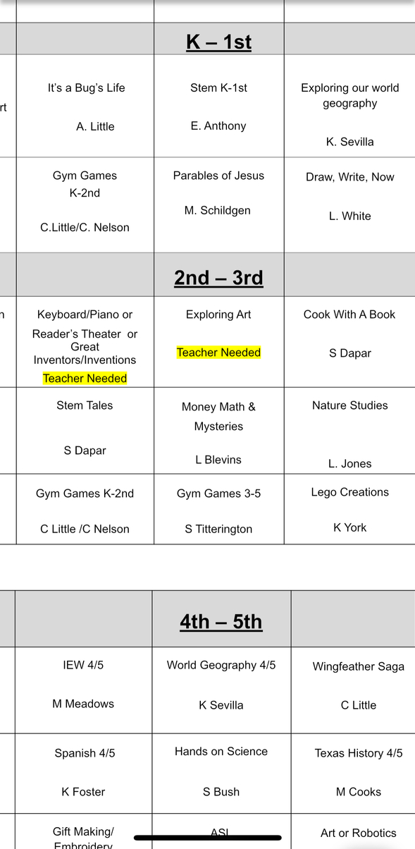 Sonlight works as a true cooperative to keep fees reasonable. This means that each adult attending with their students will be required to assist in some fashion for every hour attended. In addition, each family has either ONE teaching requirement to fulfill OR a cleaning committment at the end of the Sonlight day.